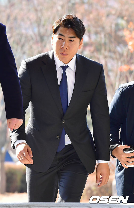 음주 사고 후 도주 혐의로 기소된 메이저리거 강정호가 3일 오전 1심 판결을 받기 위해 서울 서초동 서울중앙지법 법정으로 향하고 있다. / youngrae@osen.co.kr