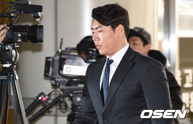 음주 사고 후 도주 혐의로 기소된 메이저리거 강정호가 3일 오전 1심 판결을 받기 위해 서울 서초동 서울중앙지법 법정으로 향하고 있다. / youngrae@osen.co.kr