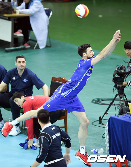 3일 오후 경기도 수원시 수원실내체육관서 펼쳐진 2016-2017 NH농협 V리그 남자부 한국전력과 대한항공의 경기,1세트 대한항공 가스파리니가 공을 살려내고 있다. / soul1014@osen.co.kr