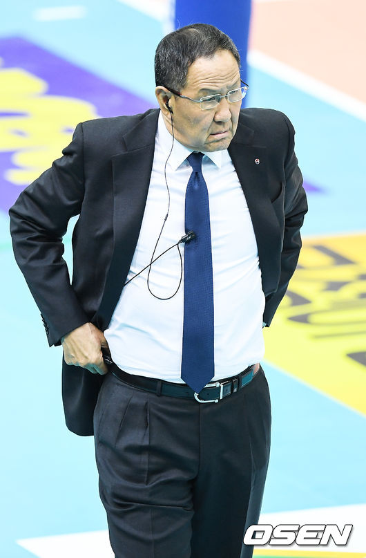 3일 오후 경기도 수원시 수원실내체육관서 펼쳐진 2016-2017 NH농협 V리그 남자부 한국전력과 대한항공의 경기,1세트 대한항공 박기원 감독이 옷을 고쳐 입고 있다. / soul1014@osen.co.kr