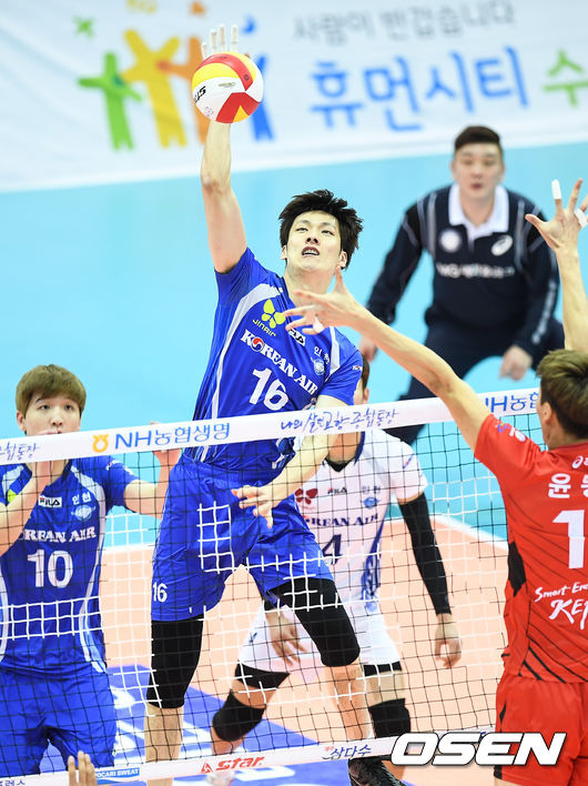3일 오후 경기도 수원시 수원실내체육관서 펼쳐진 2016-2017 NH농협 V리그 남자부 한국전력과 대한항공의 경기,1세트 대한항공 진상헌이 강타를 날리고 있다. / soul1014@osen.co.kr