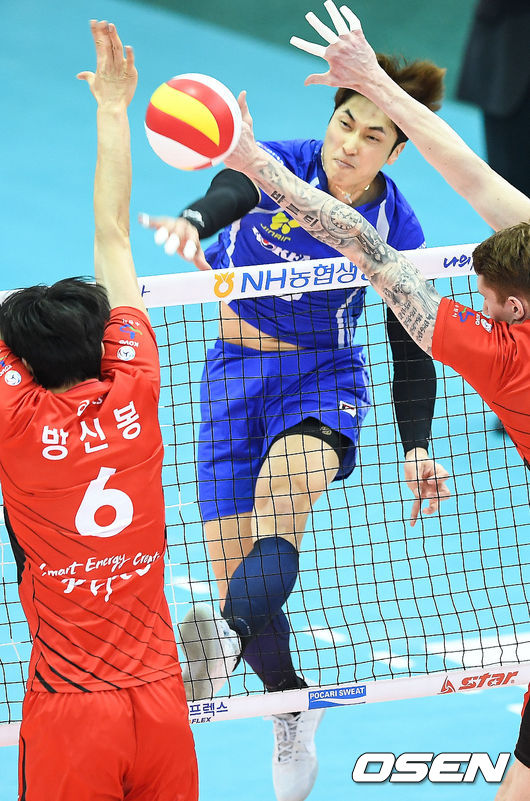 3일 오후 경기도 수원시 수원실내체육관서 펼쳐진 2016-2017 NH농협 V리그 남자부 한국전력과 대한항공의 경기,1세트 대한항공 김학민이 강타를 날리고 있다. / soul1014@osen.co.kr