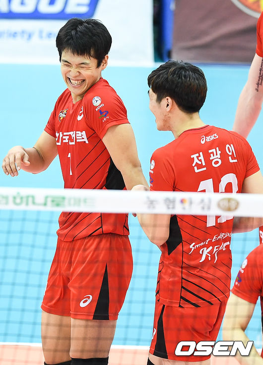 3일 오후 경기도 수원시 수원실내체육관서 펼쳐진 2016-2017 NH농협 V리그 남자부 한국전력과 대한항공의 경기,3세트 한국전력 서재덕이 서브범실 후 미소 짓고 있다. / soul1014@osen.co.kr