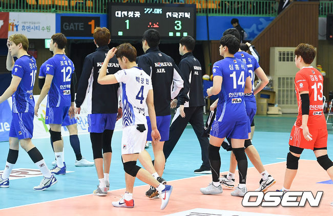 경기종료 후 대한항공 선수들이 아쉬워하고 있다. / soul1014@osen.co.kr