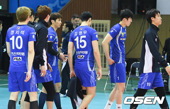 경기종료 후 대한항공 선수들이 아쉬워하고 있다. / soul1014@osen.co.kr