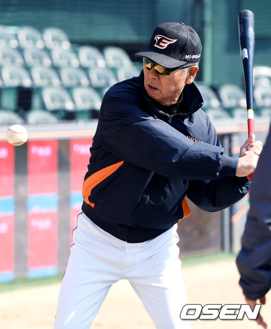 14일 대전 한화생명 이글스파크에서 '2017 타이어뱅크 KBO 리그' 한화 이글스와 LG 트윈스의 시범경기가 열릴 예정인 가운데 한화 김성근 감독이 로사리오에게 타격지도를 하고 있다. / eastsea@osen.co.kr