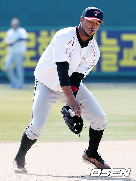 14일 대전 한화생명 이글스파크에서 '2017 타이어뱅크 KBO 리그' 한화 이글스와 LG 트윈스의 시범경기가 열릴 예정인 가운데 LG 히메네스가 수비 훈련을 하고 있다. / eastsea@osen.co.kr