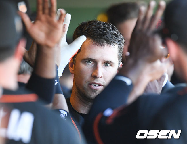 25일 오후 미국 애리조나주 스캇데일 스타디움에서 진행된 2017 메이저리그(MLB) 시범경기 샌프란시스코 자이언츠와 샌디에이고 파드리스의 경기, 2회말 샌프란시스코 선두타자 포지가 솔로홈런을 날리고 동료들의 축하를 받고 있다. / soul1014@osen.co.kr