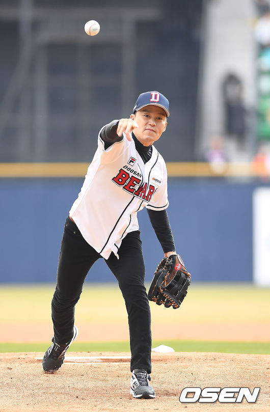 1일 오후 서울 잠실구장에서 열린 '2017 타이어뱅크 KBO리그' 두산 베어스와 한화 이글스의 경기, 배우 이서진이 시구를 하고 있다. / youngrae@osen.co.kr