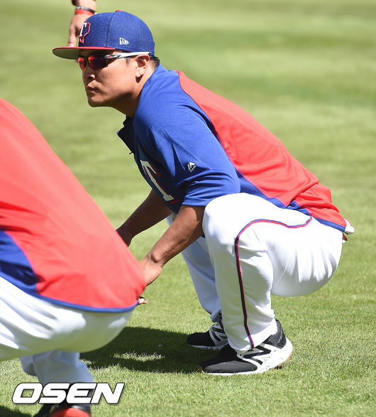3일 오후(현지시간) 미국 텍사스주 알링턴 글로브 라이브 파크에서 열린 2017 메이저리그(MLB) 텍사스 레인저스와 클리블랜드 인디언스의 개막전 경기에 앞서 추신수가 스트레칭을 하고 있다. / soul1014@osen.co.kr