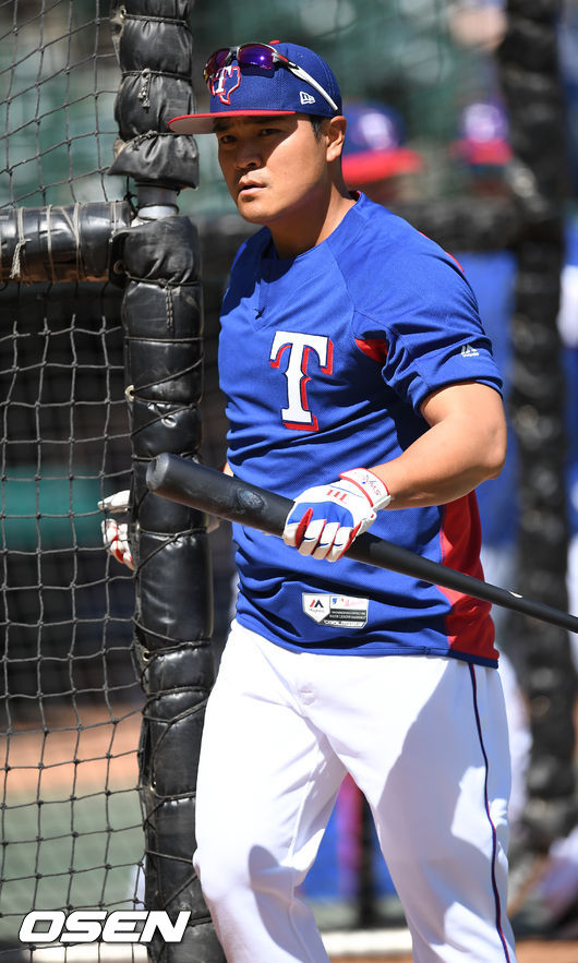 3일 오후(현지시간) 미국 텍사스주 알링턴 글로브 라이브 파크에서 열린 2017 메이저리그(MLB) 텍사스 레인저스와 클리블랜드 인디언스의 개막전 경기에 앞서 추신수가 타격훈련을 마친뒤 타격케이지에서 나오고 있다/ soul1014@osen.co.kr