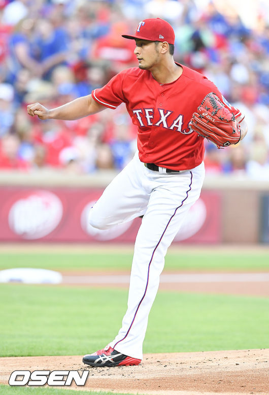 3일 오후(현지시간) 미국 텍사스주 알링턴 글로브 라이브 파크에서 열린 2017 메이저리그(MLB) 텍사스 레인저스와 클리블랜드 인디언스의 개막전, 1회초 텍사스 선발투수 다르빗슈 유가 역투하고 있다. / soul1014@osen.co.kr