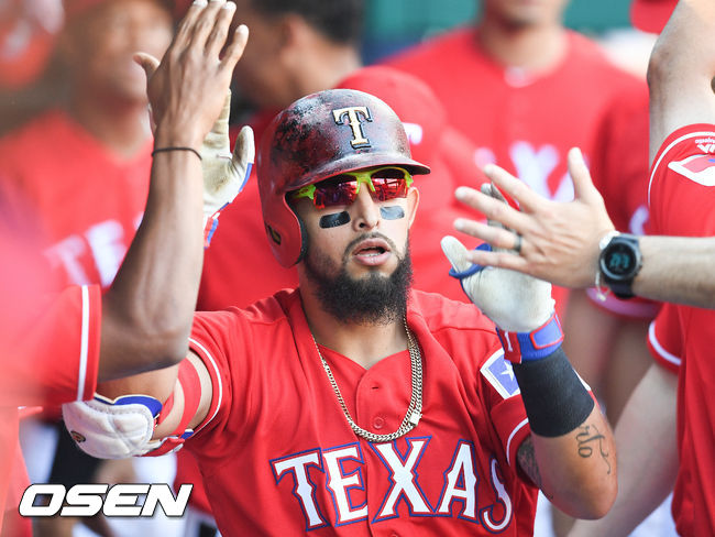 3일 오후(현지시간) 미국 텍사스주 알링턴 글로브 라이브 파크에서 열린 2017 메이저리그(MLB) 텍사스 레인저스와 클리블랜드 인디언스의 개막전, 2회말 2사 텍사스 오도어가 선취 솔로홈런을 날리고 기뻐하고 있다./ soul1014@osen.co.kr