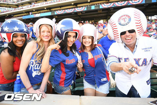 3일 오후(현지시간) 미국 텍사스주 알링턴 글로브 라이브 파크에서 열린 2017 메이저리그(MLB) 텍사스 레인저스와 클리블랜드 인디언스의 개막전, 텍사스 야구팬들이 카메라를 향해 포즈를 취하고 있다./ soul1014@osen.co.kr