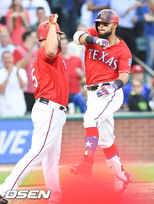 3일 오후(현지시간) 미국 텍사스주 알링턴 글로브 라이브 파크에서 열린 2017 메이저리그(MLB) 텍사스 레인저스와 클리블랜드 인디언스의 개막전,3회말 1사 1,2루 오도어가 3점 홈런을 날린뒤 기뻐하고 있다. / soul1014@osen.co.kr