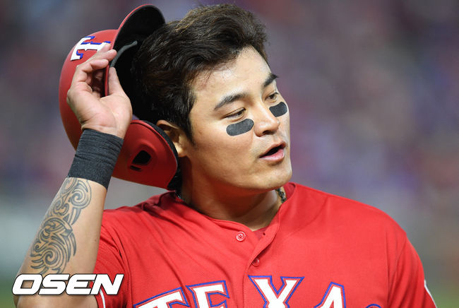3일 오후(현지시간) 미국 텍사스주 알링턴 글로브 라이브 파크에서 열린 2017 메이저리그(MLB) 텍사스 레인저스와 클리블랜드 인디언스의 개막전,7회말 이닝종료때 1루 주자 추신수가 1루 코치와 이야기를 나누며 더그아웃으로 걸어가고 있다./ soul1014@osen.co.kr