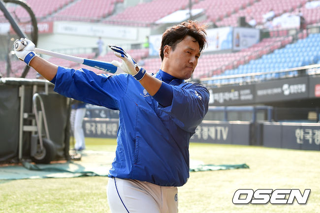 4일 오후 서울 잠실야구장에서 열린 '2017 타이어뱅크 KBO리그' LG 트윈스와 삼성 라이온스의 경기, 경기에 앞서 삼성 이승엽이 훈련을 준비하고 있다. /jpnews@osen.co.kr