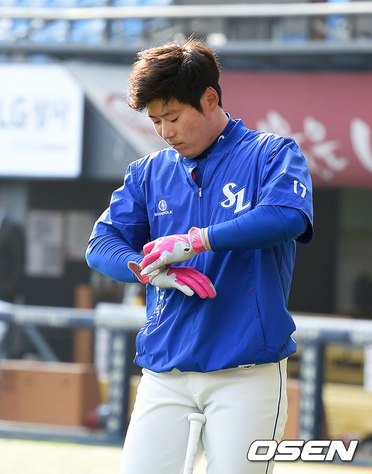 4일 오후 서울 잠실야구장에서 열린 '2017 타이어뱅크 KBO리그' LG 트윈스와 삼성 라이온스의 경기, 경기에 앞서 삼성 이원석이 훈련을 준비하고 있다. /jpnews@osen.co.kr