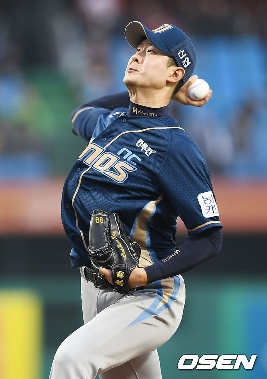 4일 대전 한화생명이글스파크에서 열린 '2017 타이어뱅크 KBO 리그' 한화 이글스와 NC 다이노스의 경기서, NC 선발 최금강이 힘차게 공을 뿌리고 있다. / rumi@osen.co.kr
