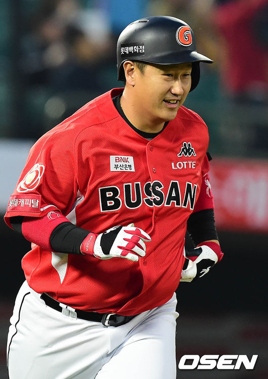 4일 오후 부산 사직야구장에서 열린 '2017 타이어뱅크 KBO 리그' 롯데 자이언츠와 넥센 히어로즈의 경기 1회말 1사 2루 이대호가 투런포를 날리고 달리고 있다. / baik@osen.co.kr