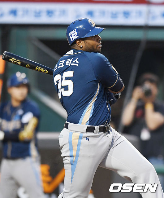 4일 대전 한화생명이글스파크에서 열린 '2017 타이어뱅크 KBO 리그' 한화 이글스와 NC 다이노스의 경기서, 2회초 NC 선두타자 스크럭스가 중견수 앞 안타를 날리고 있다. / rumi@osen.co.kr