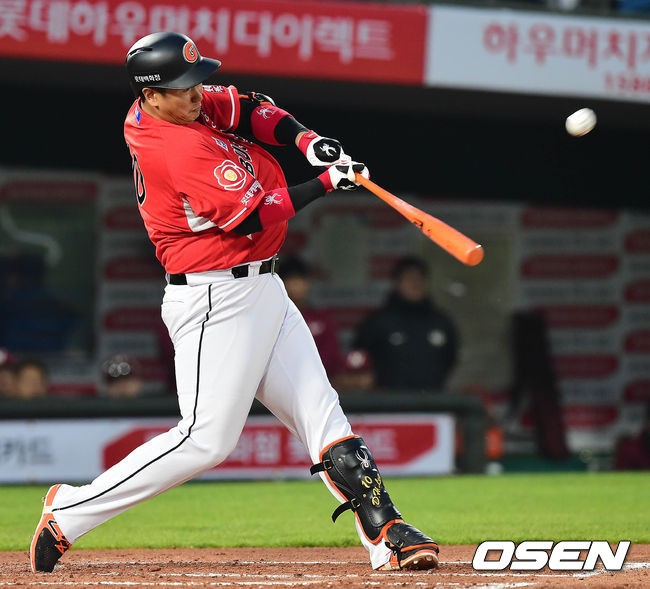 4일 오후 부산 사직야구장에서 열린 '2017 타이어뱅크 KBO 리그' 롯데 자이언츠와 넥센 히어로즈의 경기 1회말 1사 2루 이대호가 투런홈런을 치고 있다. / baik@osen.co.kr