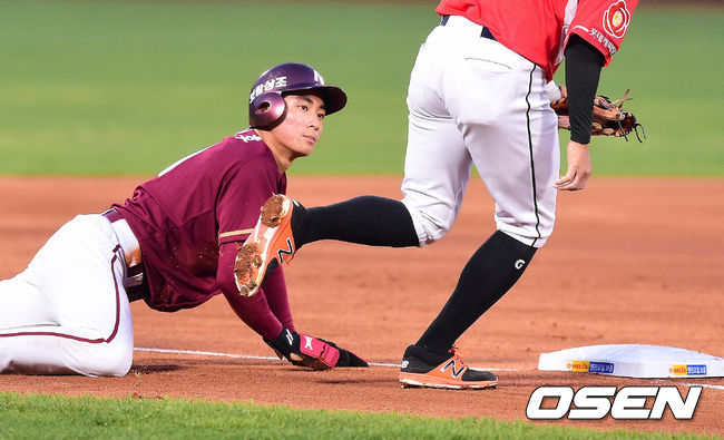 4일 오후 부산 사직야구장에서 열린 '2017 타이어뱅크 KBO 리그' 롯데 자이언츠와 넥센 히어로즈의 경기 1회초 2사 1,2루 채태인의 내야안타 상황, 2루주자 이정후가 홈까지 달리다 3루로 귀루하며 태그아웃 당하고 아쉬운 표정으로 그라운드에 누워 있다. / baik@osen.co.kr