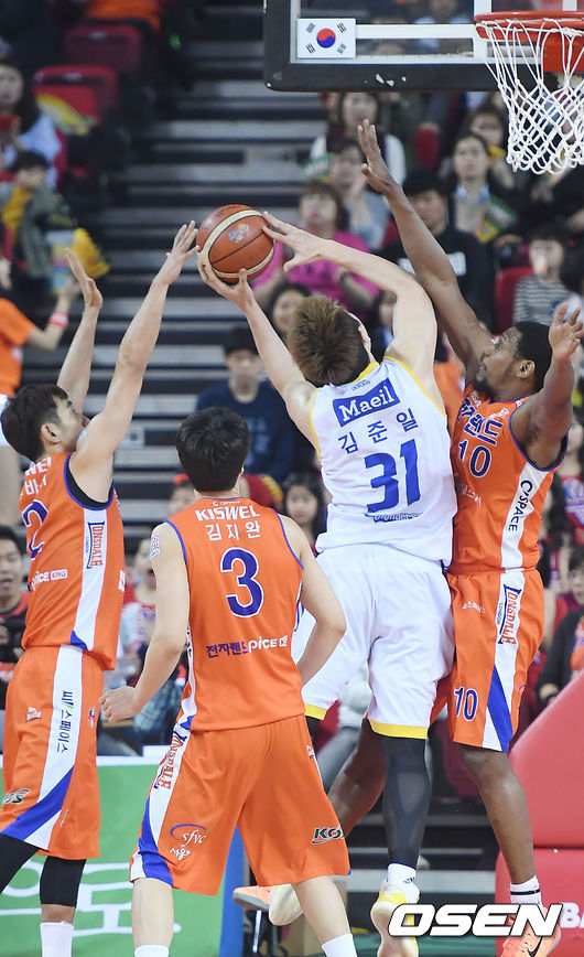4일 오후 인천 부평구 삼산월드체육관에서 '2016-2017 KCC 프로농구' 6강 플레이오프 3차전 인천 전자랜드와 서울 삼성의 경기 1쿼터 전자랜드 빅터가 삼성 김준일을 마크하고 있다./youngrae@osen.co.kr