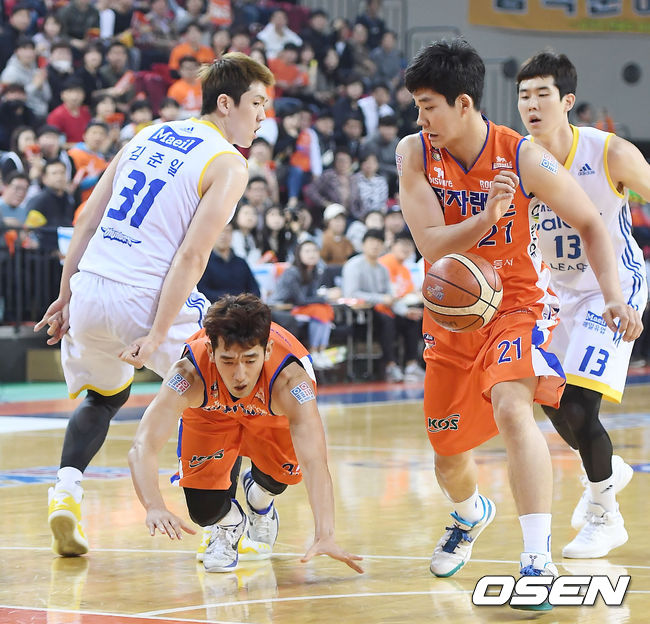 4일 오후 인천 부평구 삼산월드체육관에서 '2016-2017 KCC 프로농구' 6강 플레이오프 3차전 인천 전자랜드와 서울 삼성의 경기 1쿼터 전자랜드 차바위가 반칙을 당해 넘어지고 있다./youngrae@osen.co.kr