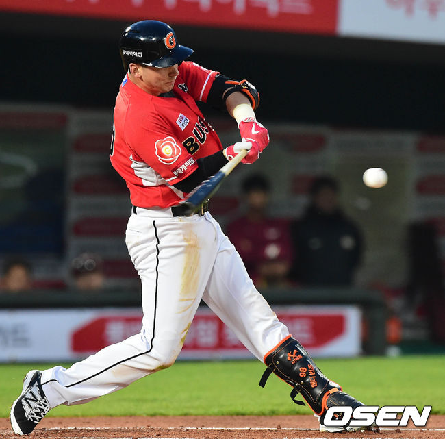4일 오후 부산 사직야구장에서 열린 '2017 타이어뱅크 KBO 리그' 롯데 자이언츠와 넥센 히어로즈의 경기 1회말 무사 2루 번즈가 1타점 적시타를 치고 있다. / baik@osen.co.kr