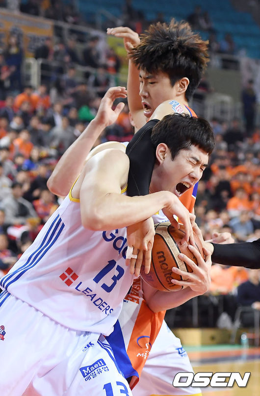 4일 오후 인천 부평구 삼산월드체육관에서 '2016-2017 KCC 프로농구' 6강 플레이오프 3차전 인천 전자랜드와 서울 삼성의 경기 1쿼터 삼성 임동섭이 리바운드 다툼을 벌이다 전자랜드 정효근에게 반칙을 당하고 있다./youngrae@osen.co.kr