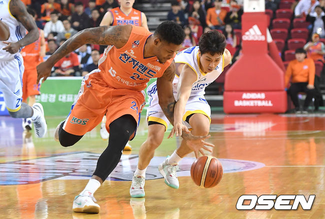 4일 오후 인천 부평구 삼산월드체육관에서 '2016-2017 KCC 프로농구' 6강 플레이오프 3차전 인천 전자랜드와 서울 삼성의 경기 2쿼터 삼성 김태술이 전자랜드 켈리의 공을 뺏어내고 있다./youngrae@osen.co.kr