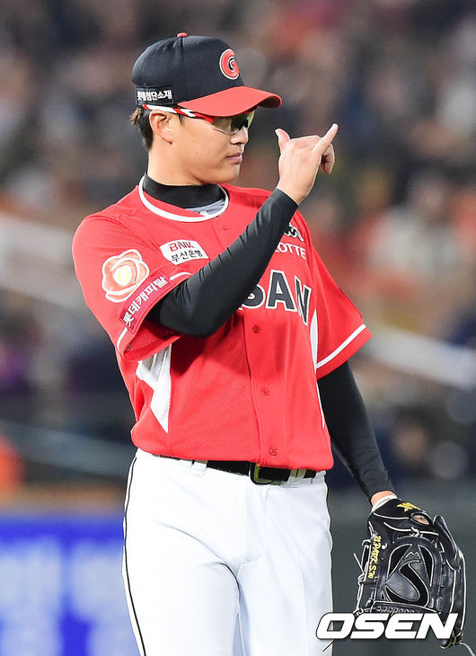 4일 오후 부산 사직야구장에서 열린 '2017 타이어뱅크 KBO 리그' 롯데 자이언츠와 넥센 히어로즈의 경기 3회초 1사 1,2루 대니 돈을 병살로 처리한 박세웅이 기뻐하며 덕아웃으로 향하고 있다. / baik@osen.co.kr