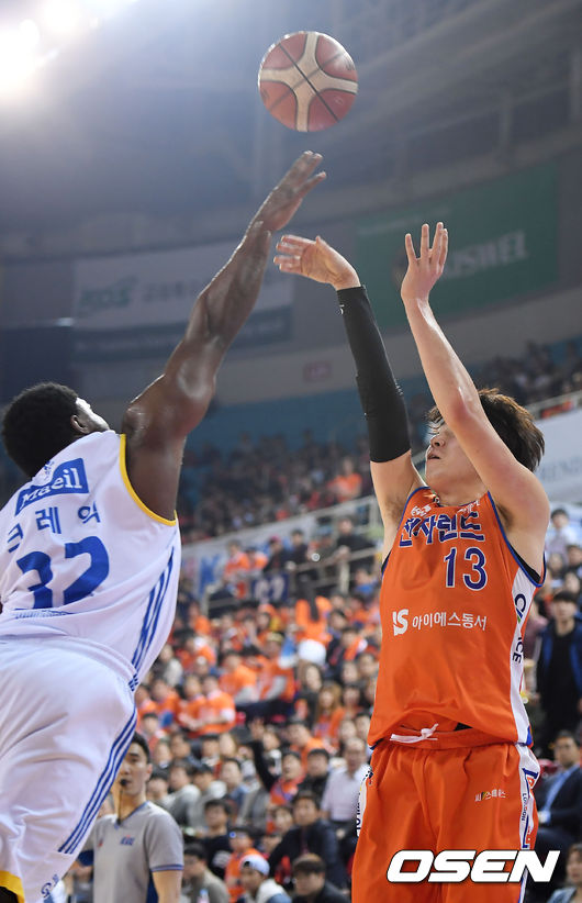 4일 오후 인천 부평구 삼산월드체육관에서 '2016-2017 KCC 프로농구' 6강 플레이오프 3차전 인천 전자랜드와 서울 삼성의 경기 2쿼터 전자랜드 강상재가 슛을 하고 있다./youngrae@osen.co.kr