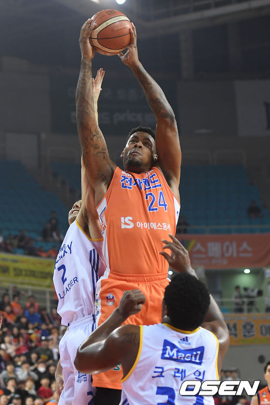 4일 오후 인천 부평구 삼산월드체육관에서 '2016-2017 KCC 프로농구' 6강 플레이오프 3차전 인천 전자랜드와 서울 삼성의 경기 2쿼터 전자랜드 켈리가 리바운드를 잡아내고 있다./youngrae@osen.co.kr