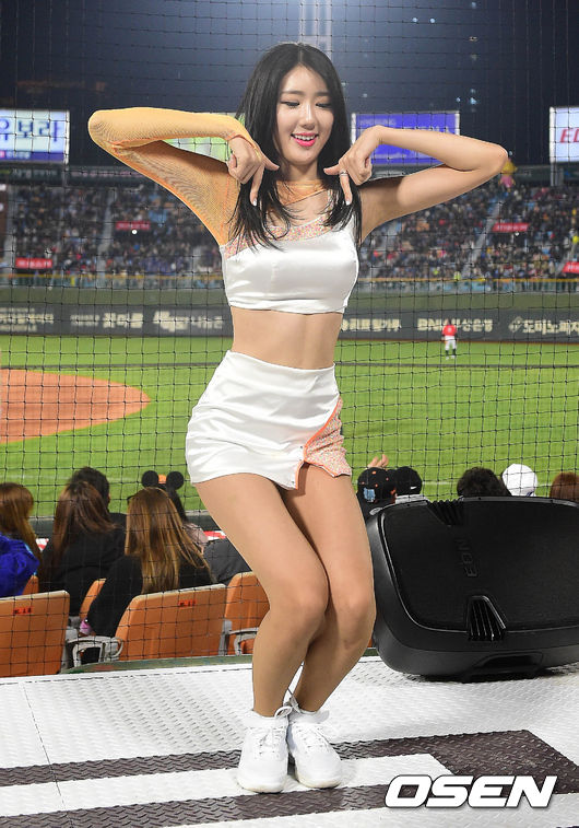 4일 오후 부산 사직야구장에서 열린 '2017 타이어뱅크 KBO 리그' 롯데 자이언츠와 넥센 히어로즈의 경기, 치어리더들이 공연을 펼치고 있다. / baik@osen.co.kr