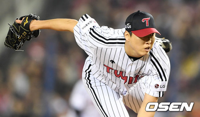 4일 오후 서울 잠실야구장에서 열린 '2017 타이어뱅크 KBO리그' LG 트윈스와 삼성 라이온스의 경기, 3회초 LG 차우찬이 역투하고 있다. /jpnews@osen.co.kr