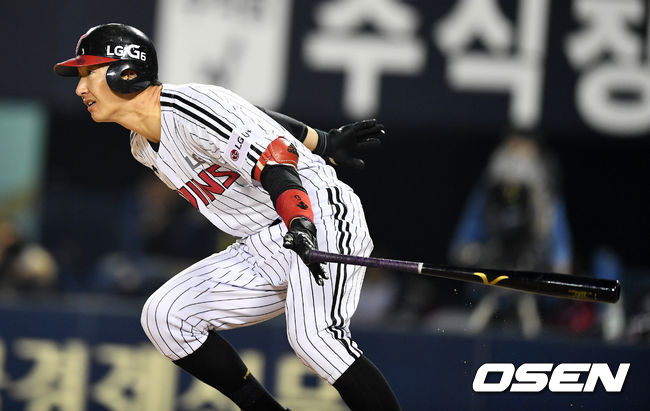4일 오후 서울 잠실야구장에서 열린 '2017 타이어뱅크 KBO리그' LG 트윈스와 삼성 라이온스의 경기, 3회말 1사 1루에서 LG 손주인이 좌전안타를 날리고 있다. /jpnews@osen.co.kr