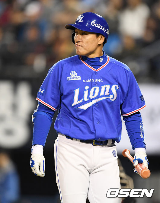 4일 오후 서울 잠실야구장에서 열린 '2017 타이어뱅크 KBO리그' LG 트윈스와 삼성 라이온스의 경기, 4회초 무사에서 삼성 이승엽이 삼진으로 물러나며 아쉬워하고 있다. /jpnews@osen.co.kr