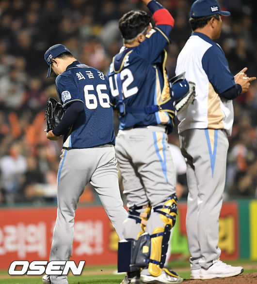 4일 대전 한화생명이글스파크에서 열린 '2017 타이어뱅크 KBO 리그' 한화 이글스와 NC 다이노스의 경기, 3회말 1사 주자 1,2루 한화 차일목 타석에서 NC 선발 최금강이 강판되고 있다./ rumi@osen.co.kr