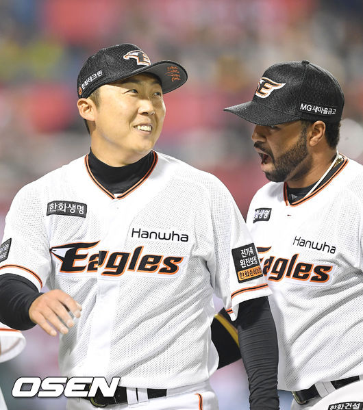 4일 대전 한화생명이글스파크에서 열린 '2017 타이어뱅크 KBO 리그' 한화 이글스와 NC 다이노스의 경기, 5회초를 마친 한화 배영수가 환하게 미소짓고 있다./ rumi@osen.co.kr