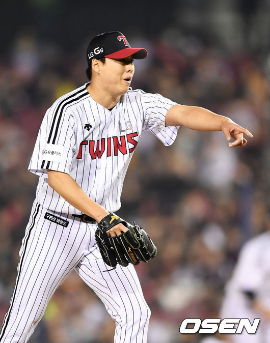4일 오후 서울 잠실야구장에서 열린 '2017 타이어뱅크 KBO리그' LG 트윈스와 삼성 라이온스의 경기, 6회초 2사 1,2루에서 LG 차우찬이 삼성 강한울을 스트라이크 낫아웃으로 처리하고 있다. /jpnews@osen.co.kr