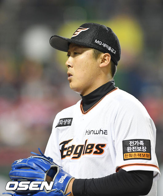 4일 대전 한화생명이글스파크에서 열린 '2017 타이어뱅크 KBO 리그' 한화 이글스와 NC 다이노스의 경기, 6회초를 마친 한화 선발 배영수가 글러브를 치며 덕아웃으로 들어오고 있다./ rumi@osen.co.kr