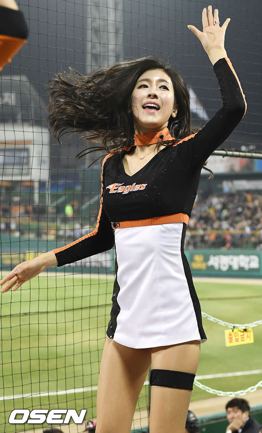 4일 대전 한화생명이글스파크에서 열린 '2017 타이어뱅크 KBO 리그' 한화 이글스와 NC 다이노스의 경기, 한화 치어리더 김연정이 화려한 무대를 선보이고 있다./ rumi@osen.co.kr