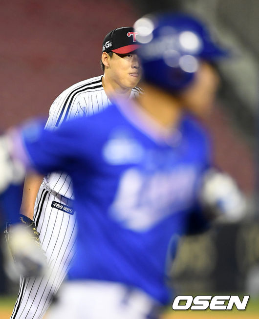 4일 오후 서울 잠실야구장에서 열린 '2017 타이어뱅크 KBO리그' LG 트윈스와 삼성 라이온스의 경기, 7회초 1사에서 LG 차우찬이 삼성 박해민에 우전안타를 허용하고 있다. /jpnews@osen.co.kr