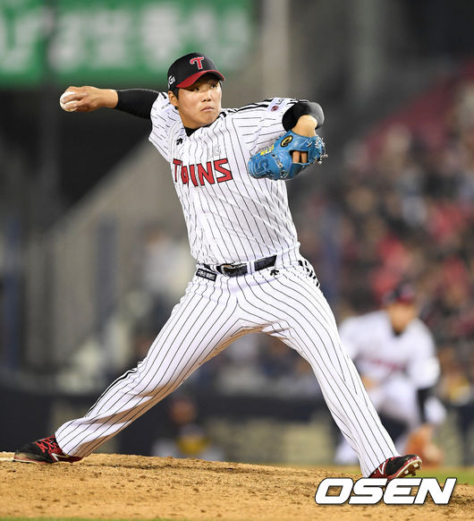 4일 오후 서울 잠실야구장에서 열린 '2017 타이어뱅크 KBO리그' LG 트윈스와 삼성 라이온스의 경기, 8회초 LG 김대현이 역투하고 있다. /jpnews@osen.co.kr