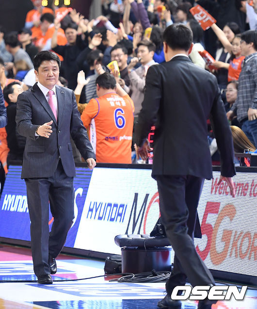 승리를 거둔 인천 유도훈 감독이 이상민 감독과 악수를 나누고 있다./youngrae@osen.co.kr