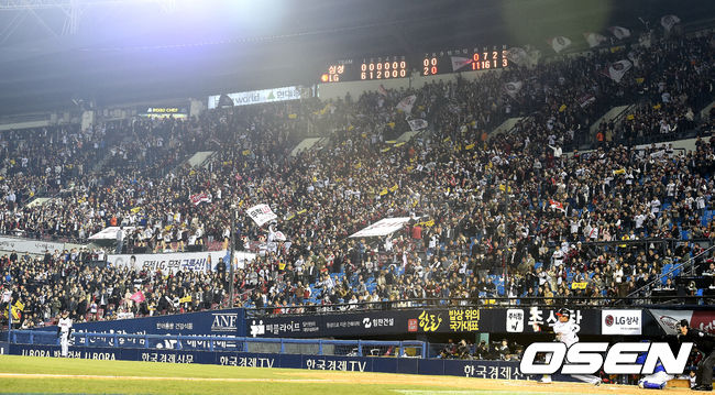 4일 오후 서울 잠실야구장에서 열린 '2017 타이어뱅크 KBO리그' LG 트윈스와 삼성 라이온스의 경기, 8회말 LG 팬들이 열띤 응원을 선보이고 있다. /jpnews@osen.co.kr