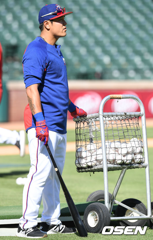 4일 오후(현지시간) 미국 텍사스주 알링턴 글로브 라이브 파크에서 열린 2017 메이저리그(MLB) 텍사스 레인저스와 클리블랜드 인디언스의 경기에 앞서 추신수가 타격훈련을 마친뒤 전광판을 바라보고 있다. / soul1014@osen.co.kr
