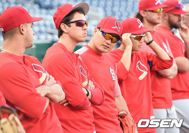 12일(한국시간) 미국 워싱턴 D.C 내셔널스 파크에서 열린 2017 메이저리그(MLB) 워싱턴 내셔널스와 세인트루이스 카디널스의 경기에 앞서 오승환이취재진을 향해 인사를 하고 있다. / soul1014@osen.co.kr